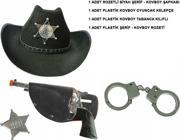 Çocuk Boy Siyah Şerif - Kovboy Şapka Tabanca Rozet ve Kelepçe Seti 4 Parça