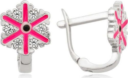Gümüş Pembe Kar Tanesi Çocuk Küpesi