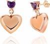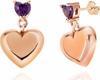 Gümüş Rose Mor Zirkon Taşlı Kalp Çivili Kadın Küpe