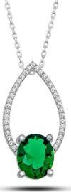 Gümüş Yeşil Oval Taşlı Damla Kadın Kolye
