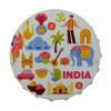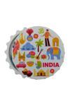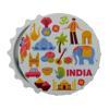 Hindistan temalı şişe kapağı şeklinde tasarım magnet ve şişe kapağı açacağıdır.