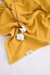 Özel "design" koleksiyonundan, şık ve modern bir görünüm sunan hardal renkli bebek battaniyesi