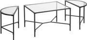 Genişlik:125cm Derinlik:55cm Yükseklik:45cm Ayak elektrostatik fırın boyalı metal malzemeden üretilmiştir. Tablalar temperli cam malzemeden üretilmiştir. Orta Sehpa Genişlik:70cm Derinlik:55cm Yükseklik:45cm Yan Sehpa Genişlik:27,5cm Derinlik:55cm Yükseklik:45cm