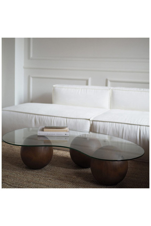 - Modern tasarımıyla evinizin dekorasyonuna şıklık katan geometrik şekilli ahşap cam orta sehpa.