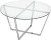 Yükseklik: 40cm üst Tabla çapı: 100cm Ayak: Paslanmaz Krom çelik Metal Tabla: Temperli Cam