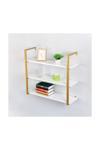 - Modern tasarımıyla evinizin dekorasyonuna şıklık katan Tasnia Gold Metal Ahşap Duvar Rafı, 90 cm genişliğindeki yapısıyla geniş saklama alanı sunar.