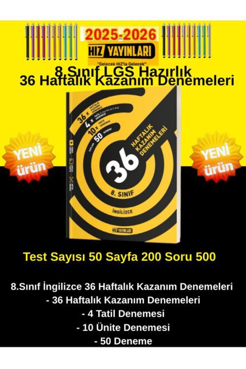 Hız Yayınları Hız 2025-2026 8.Sınıf Lgs Hazırlık İngilizce 36 Haftalık Kazanım Denemeleri+Tablet Kalem
