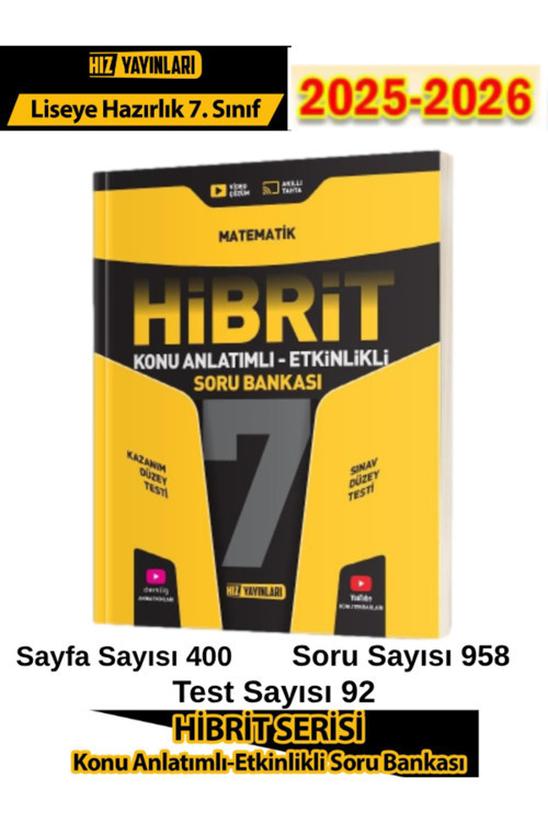 Hız Yayınları Hız Yayınları 2025-2026 7.Sınıf Hibrit Matematik Konu Anlatımlı Etkinlikli Soru Bankası