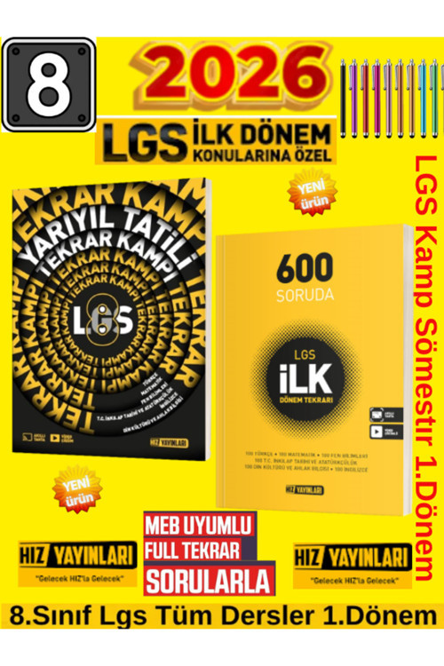 Hız Yayınları 2026 8.Sınıf Yarıyıl 1.Dönem Kamp+Hız 8.Sınıf 600 Soruda Lgs İlk Dönem Tekrar