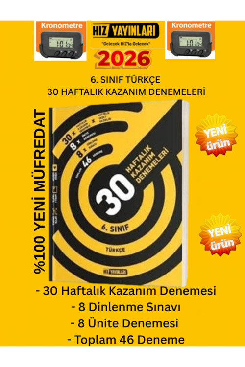Hız Yayınları Hız Yayınları 6.Sınıf Türkçe 30 Haftalık Kazanım Denemeleri (%100 Yeni Maarif Müfredat)+Kronometre