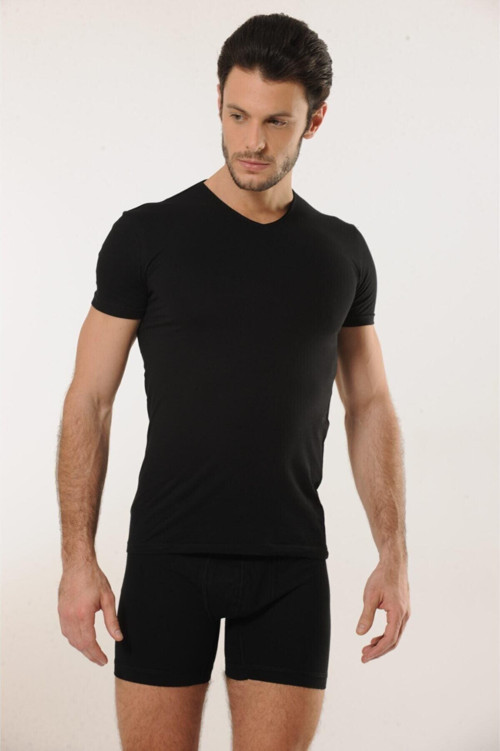 HMD 702 3'lü Pamuklu V Yaka Erkek Atlet - Sıyah Kanserojen Madde İçermeyen Boyama Tekniği Kullanılmıştır