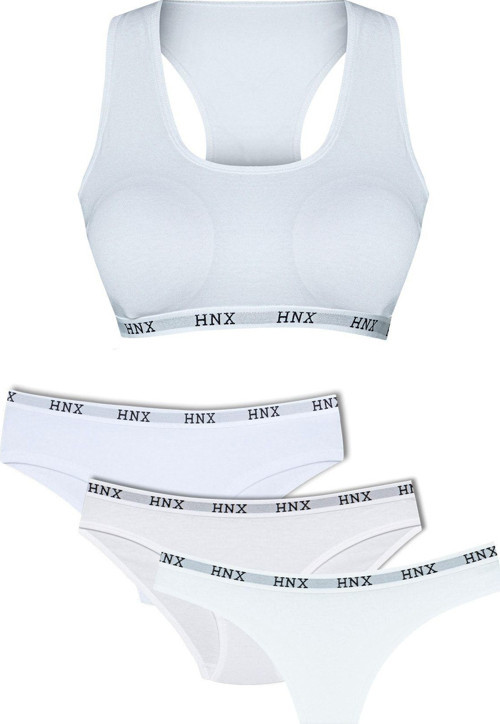 Büstiyer, tanga külot, slip külot ve hipster külottan oluşan bu kadın iç çamaşır takımı, şıklığı ve rahatlığı bir arada sunuyor.