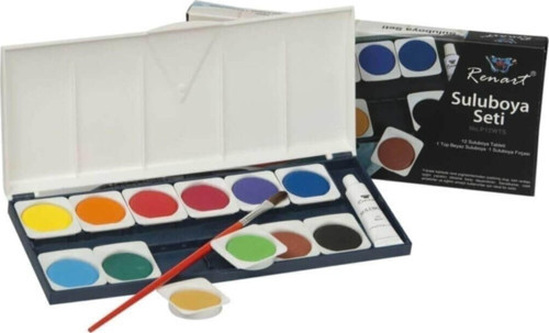 Renart suluboya seti p12wts• her biri 30mm çapında 12 renk suluboya tableti • 1 tüp beyaz renk suluboya • 1 adet yüksek kalite suluboya fırçası