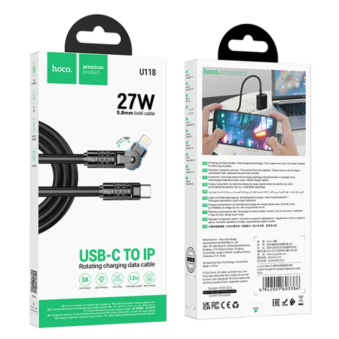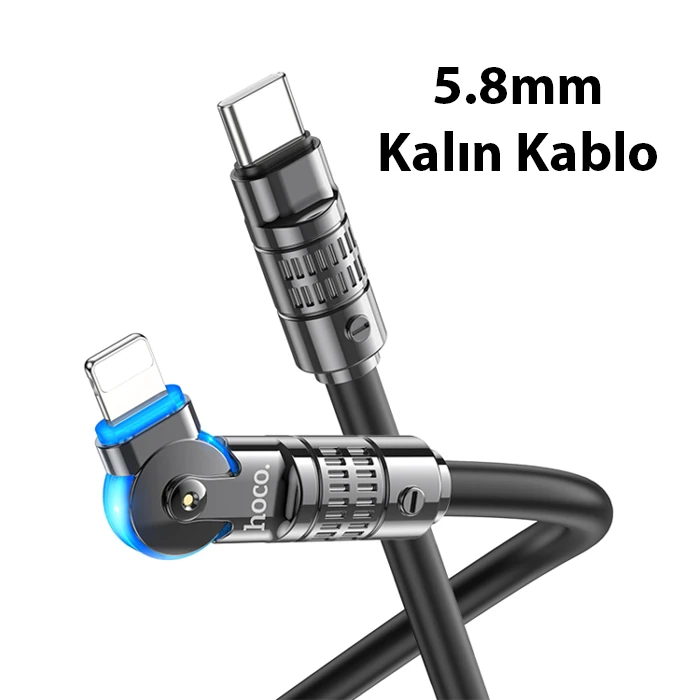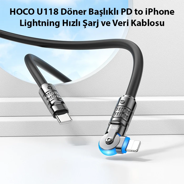 HOCO U118 Döner Başlıklı PD to iPhone Lightning Hızlı Şarj ve Veri Kablosu