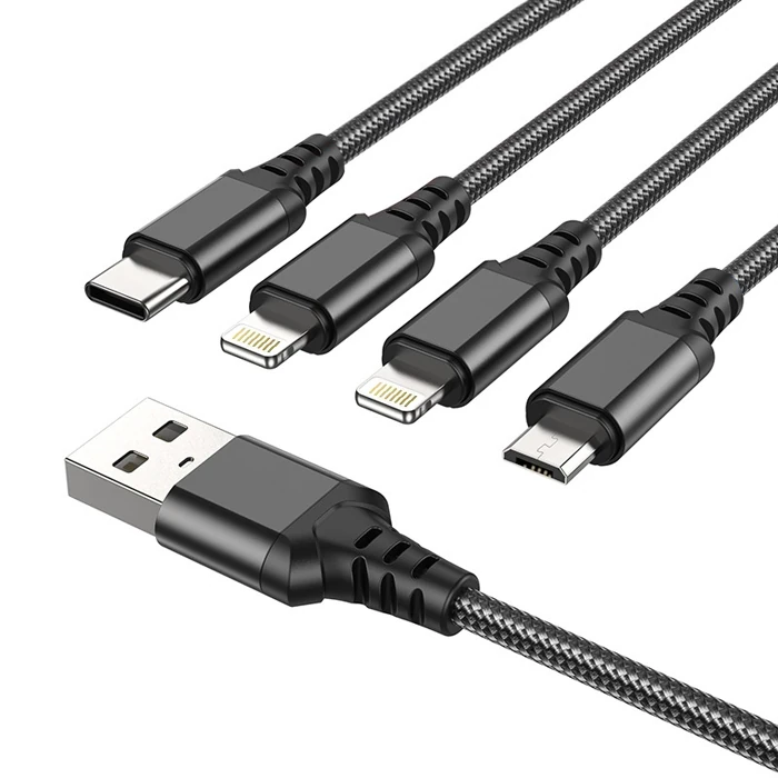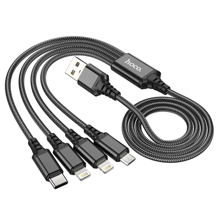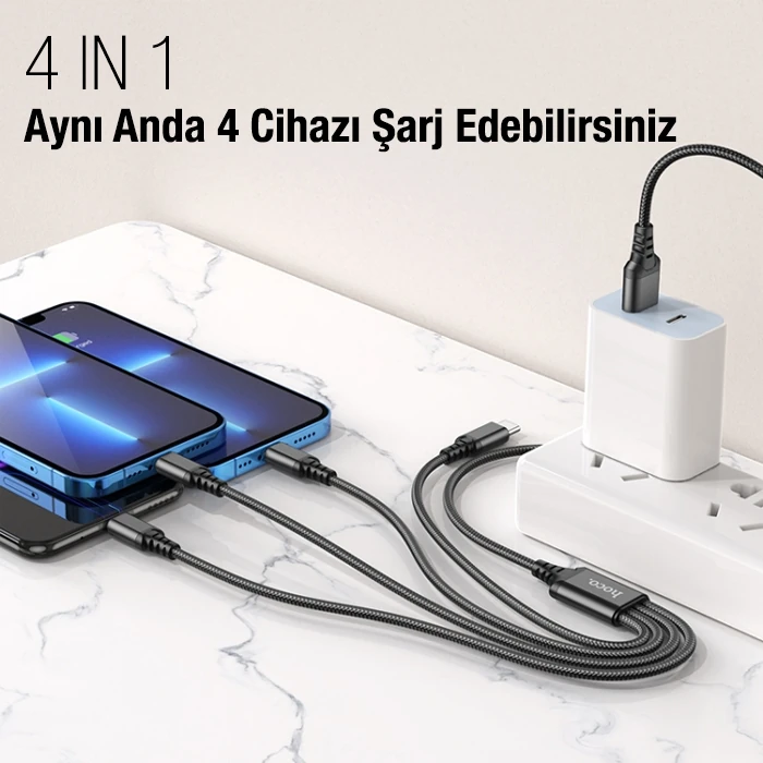 HOCO X76 4in1 Type-C + iPhone Lightning + Micro USB 2A Şarj Kablosu ile dilediğiniz telefonu anında şarj edin.