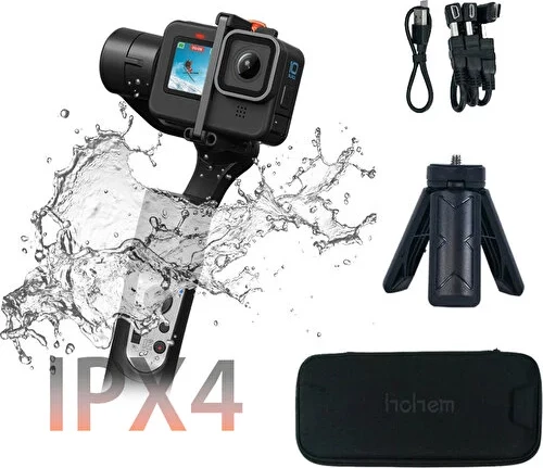 Hohem iSteady Pro 4 Aksiyon Kamerası Gimbal ,3 eksenli, GoPro 11/10/9/8/7/6/5 ile uyumlu, Osmo Action/Insta360 One R ve diğer aksiyon kameraları için, IPX4 su sıçramasına karşı korumalı