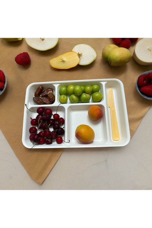 Holly Home Tabldot 5 Bölmeli Lüks Plastik Piknik Yemek Servis Tabağı Krem 1 Adet Tablot 21X31X3,3(H) Cm