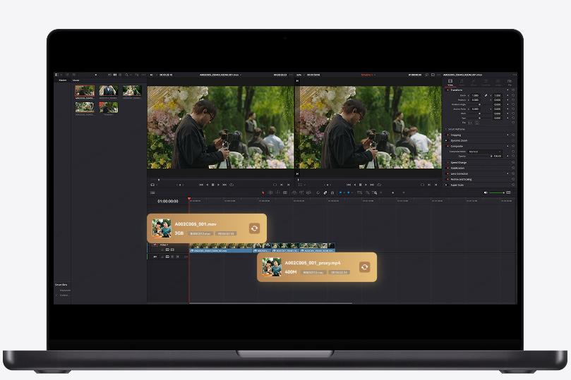 Verimli post prodüksiyon iş akışları sağlayan H.264 video kodeğiyle 1080p60'a kadar video kaydedin. Vcore, kameranın kare hızını ve zaman kodunu otomatik olarak algılayarak Premiere Pro ve DaVinci Resolve gibi düzenleme yazılımlarında sorunsuz proxy dosya bağlantısı sağlar.