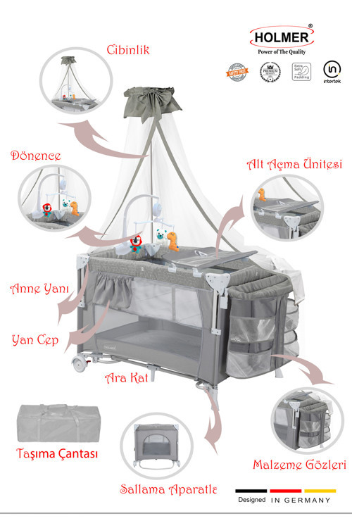 Holmer All İn One ( Cibinlikli, Dönenceli, Alt Açma Ünüteli Oyun Parkı/Park Yatak )
