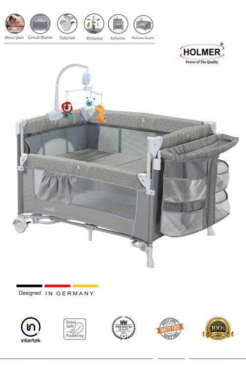 Holmer Maxi Comfort Coolstyle (Anne Yanı-Deluxe Kumaş) Premium Dönenceli Oyun Parkı/Anne Yanı 70X110Cm Gri