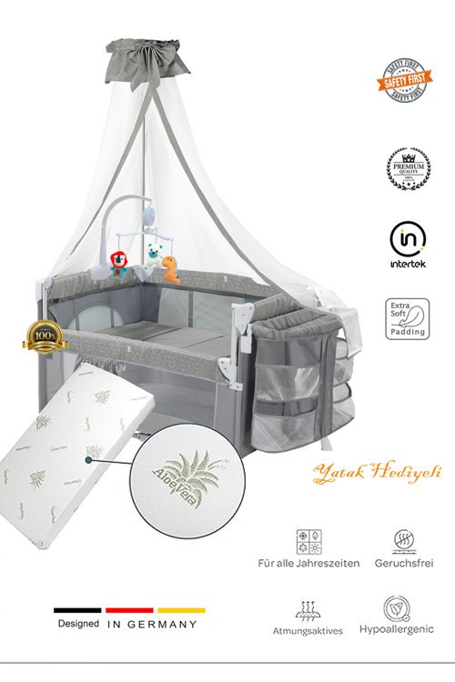 (Yatak Hediyeli) Oyun Parkı/ Anne Yanı/Park Yatak Cibinlikli Dönenceli 70X110Cm Gri
