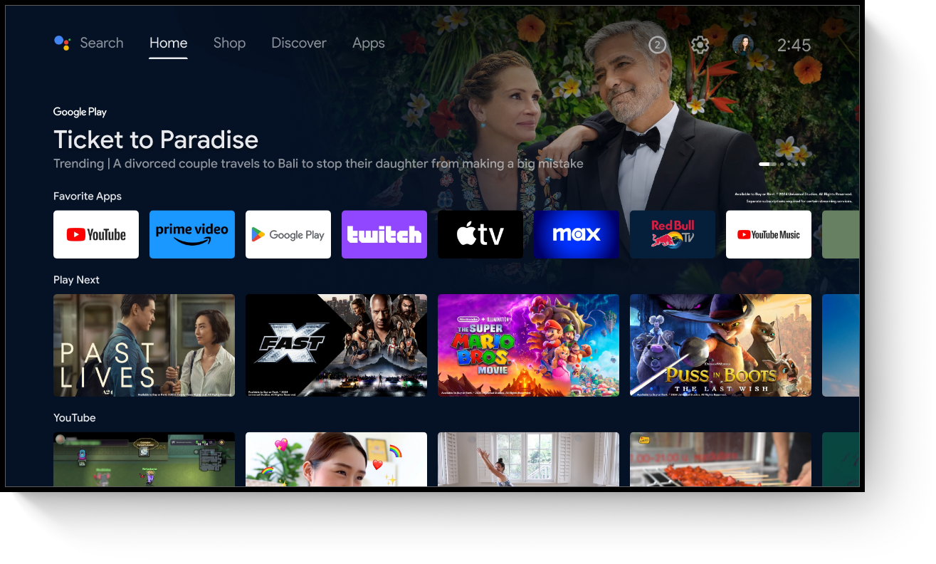 Uzaktan kumandanızdaki Google Asistan düğmesine basarak 500.000'den fazla film ve diziyi hızla arayın, ruh halinize uygun öneriler alın, akıllı ev cihazlarını kontrol edin ve daha fazlasını yapın.