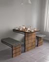 İki tabureli setiyle birlikte pratik bir yemek alanı oluşturur.
