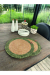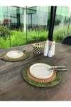 2 Kişilik Yuvarlak Amerikan Servis - Supla Naturel-Yeşil 33X33 Cm
