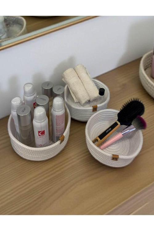 3'lü Hasır Görünümlü Sepet Seti | Çok Amaçlı Organizer | Banyo, Makyaj ve Raf Düzenleyici