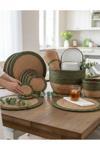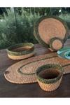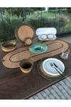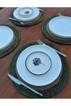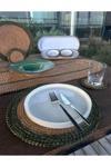 4 Kişilik Lüks Hasır Örgü Yeşil Sofralık Set (Amerikan Servis, Runner, Sepet, Ekmeklik) - 16 Parça