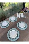 4 Kişilik Yuvarlak Amerikan Servis Özel Tasarım Su yeşili 33 x 33 cm