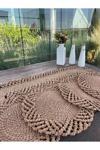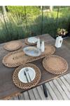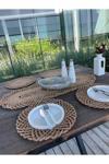 Home İnn Bohem Stil Doğal İp Hasır Sofra Seti – 4 Kişilik Hasır Görünümlü Amerikan Servis Ve Runner Takımı