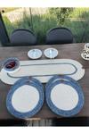 Sade ve doğal görüntüsü ile her ortamda rahatlıkla kullanılabilir Teknik Özellikler: Ürün Tipi: Polipropilen Leke Tutmaz , Kolay Temizlenebilir Renk: Beyaz / Mavi Ölçü: Amerikan Servis 33x33 cm Runner : 100x35 cm Sepet : 21x8 cm Paket İçeriği: Set: 4 Adet Amerikan Servis 1 Adet Runner 1 Adet Sepet Ürün Kullanımı : Leke temizliğinde hızlı bir şekilde ıslak bez ile silebilirsiniz.