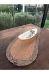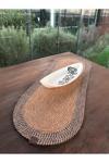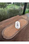 El Yapımı Görünümlü Modern Dokulu Mavi/Natural Oval Runner – Masa Üstü Dekor 35 x 100 cm