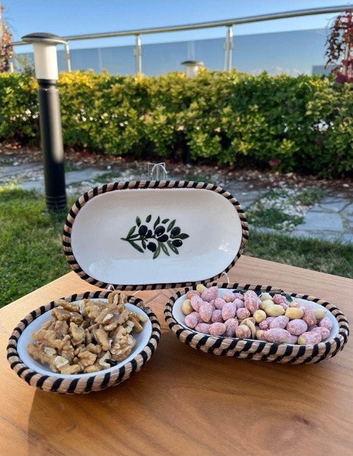 Home İnn El Yapımı Sunum Kase Seti | Leke Tutmaz | Hasır Görünümlü İp Kenar Tasarım – 3’Lü Sunum Seti