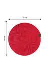 Ürün Özellikleri: Paket İçeriği: 2 Adet Supla Çap: 33 cm (Standart büyük boy) Materyal: Dayanıklı, leke tutmaz ip Renk: Kırmızı Kullanım Alanı: Amerikan servis, dekoratif altlık, sunum matı, fotoğraf altlığı