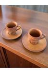 Home İnn Rustik Turuncu Mat Seramik Kahve Fincan Takımı – 4 Parça, El İşçiliği Vintage Espresso - Kahve Seti