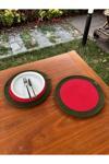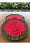 Ürün Özellikleri: Paket İçeriği: 2 Adet Supla Çap: 33 cm (Standart büyük boy) Materyal: Dayanıklı, leke tutmaz ip Renk: Kırmızı & Yeşil Kullanım Alanı: Amerikan servis, dekoratif altlık, sunum matı, fotoğraf altlığı