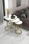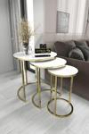 Home Plus Mobilya 3'Lü & Bohem Sehpa & Zigon Sehpa & Orta Sehpa & Modern Sehpa Takımı & Gold Ayak Beyaz Ayna