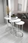 Home Plus Mobilya 3'Lü & Bohem Sehpa & Zigon Sehpa & Orta Sehpa & Modern Sehpa Takımı & Gümüş Ayak Beyaz Ayna