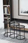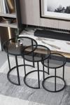 Home Plus Mobilya 3'Lü & Bohem Sehpa & Zigon Sehpa & Orta Sehpa & Modern Sehpa Takımı & Siyah Ayak Şeffaf Füme Cam
