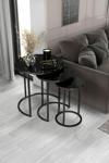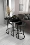 Home Plus Mobilya 3'Lü & Bohem Sehpa & Zigon Sehpa & Orta Sehpa & Modern Sehpa Takımı & Siyah Ayak Siyah Ayna