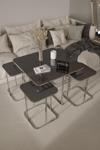 Home Plus Mobilya 5'Li Radüslü Gümüş Kaplama Füme Aynalı Orta Sehpa & Zigon Sehpa & Yan Sehpa & Bohem Sehpa Takımı