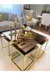 Home Plus Mobilya Berlin 5'Li Gold Kaplama Bronz Aynalı Orta Sehpa & Zigon Sehpa & Yan Sehpa & Bohem Sehpa Takımı