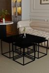 Home Plus Mobilya Bissau 5'Li Siyah İskelet Siyah Mat Mdf Orta Sehpa & Zigon Sehpa & Yan Sehpa & Bohem Sehpa Takımı