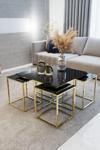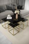 Home Plus Mobilya Caracas 5'Li Gold Kaplama Siyah Aynalı Orta Sehpa & Zigon Sehpa & Yan Sehpa & Bohem Sehpa Takımı