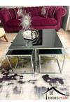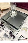 Home Plus Mobilya Pekin 5'Li Gümüş Kaplama Füme Aynalı Orta Sehpa & Zigon Sehpa & Yan Sehpa & Bohem Sehpa Takımı