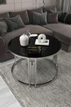 Home Plus Mobilya Piyano Gümüş Siyah Tekli Orta Sehpa Takımı
