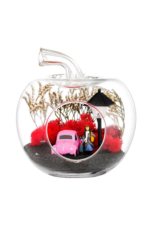 Küçük boy elma cam fanusiçerisinde tasarladığımız bu özel teraryum