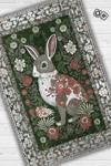 Homshtag Nuh'un Gemisi Koleksiyonu Tavşan, Çiçek Desenli Art Deco Tarzı Vintage Halı,Çok Renkli Maksimalist Halı